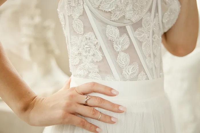 Adeline verkörpert die perfekte Kombination aus zeitloser Eleganz und individueller Freiheit. Ihre Reise ist eine Metapher für die Entdeckung der eigenen Schönheit und des einzigartigen Stils an diesem wichtigen Tag. Hier verschmelzen Mode, Kunst und Eleganz zu einer Welt, die über das Offensichtliche hinausgeht und eine tiefere, emotionale Bedeutung transportiert. Jede Geste, jede Bewegung erzählt eine Geschichte der Transformation und des Neubeginns – eine, die jede Braut in ihrer eigenen, ganz besonderen Art erleben kann. Das Shooting ist ein Spiegelbild der Schönheit in der Einfachheit und der Eleganz in der Authentizität. Eine besondere Art den eigenen Stil für den Hochzeitstag zu finden.