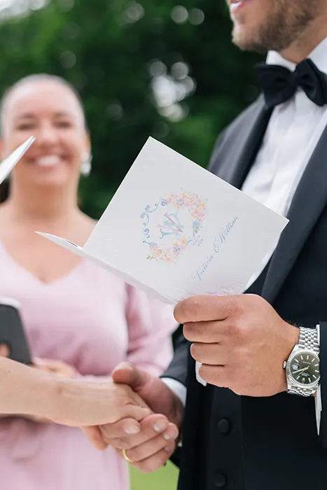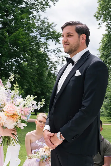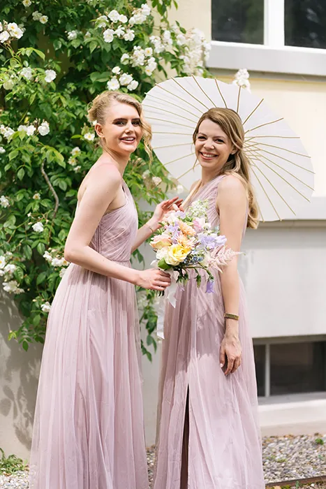 Für ein Wow sorgt das Blumenkonzept. Die Arrangements in zarten Pastelltönen verwandeln das Setting in eine romantische Stimmung. Auch die vielen kleinen Details wurden mit viel Liebe gestaltet – von der Papeterie, der Tischdekoration, der Gastgeschenke, dem exklusiven Tee bis zur Musik mit dem Cello, alles ist harmonisch aufeinander abgestimmt.